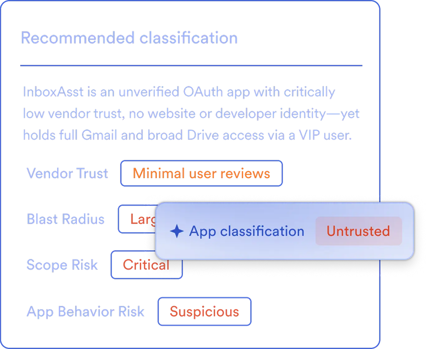OAuth is the primary way AI agents gain access to cloud workspace. And with the exploding number of AI apps and agents adopted by end users, it’s getting harder to keep up and know what to trust.